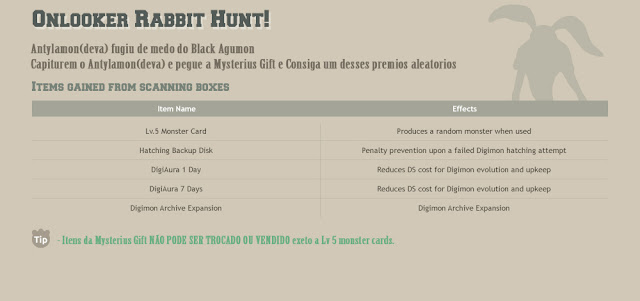 A diferença deste para o do KDMO é que na versão coreana digimons do atributo Dados ganham experiência dando return em cascas de ovos; já no global é caçando digimons do atributo Vacina.